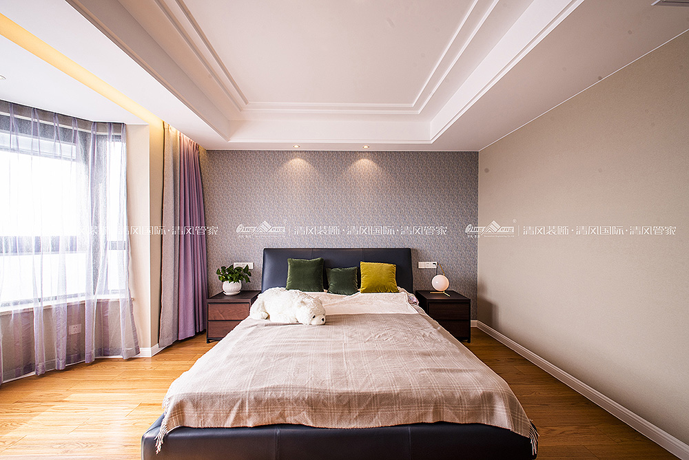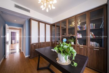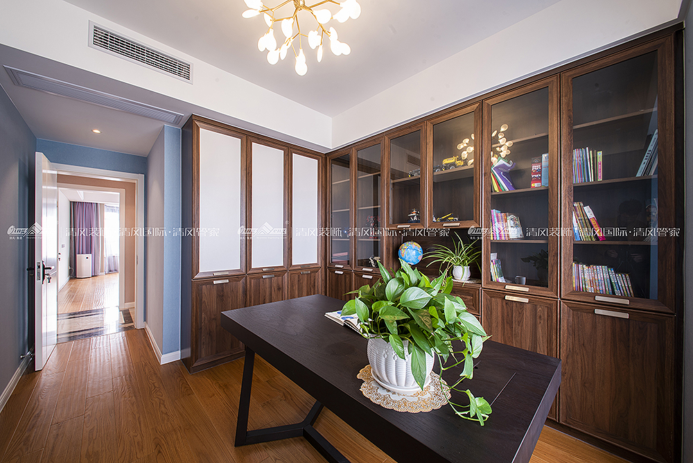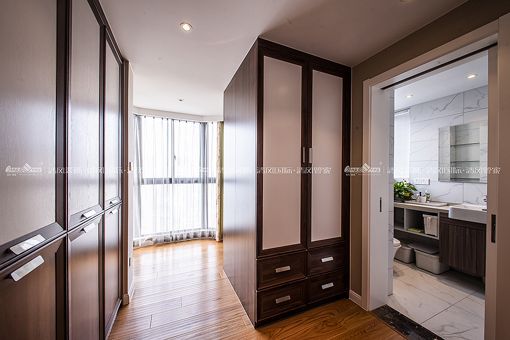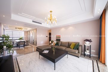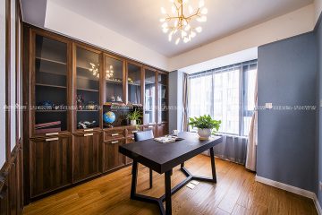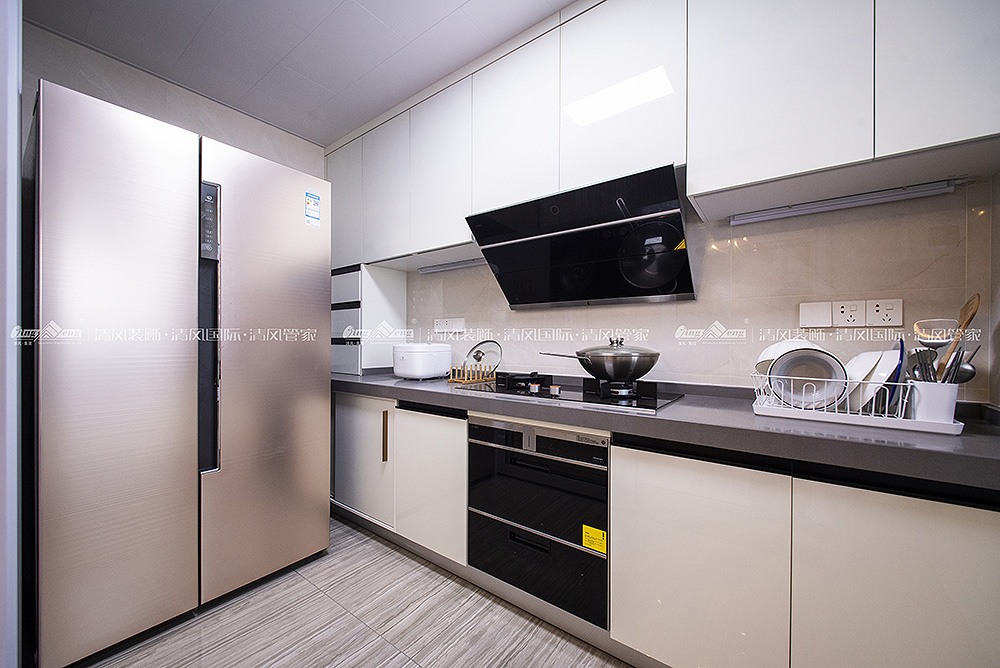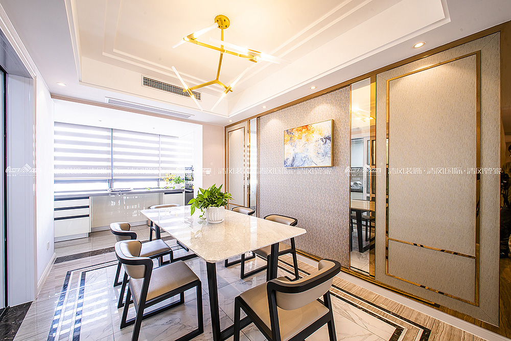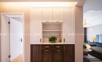 本案大地色系壁布作为主调将居室格调渲染得更为温暖雅致。细腻温润质感做为起承转合的背景色柔和而不张扬。设计将北阳台改建为西厨,蒸烤都可以在开放的空间完成,家庭成员参与感更强,给烹饪带来更多的乐趣。储物一直是客户装修的功能主题,木色与白色的拼色柜体让空间收纳功能得到最大改善,本案在满足功能使用的同时,还有不同色值的运用,让空间色调在简洁中透出丰富度,为空间带来灵动的气息,橙色/金色/祖母绿的搭配华贵而不浮夸,在质感与盈透的色泽中,清新自然!陈海霞