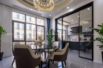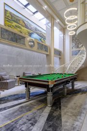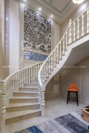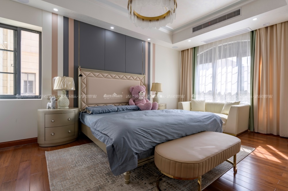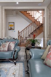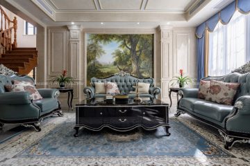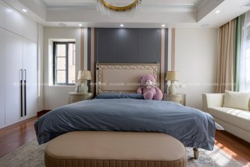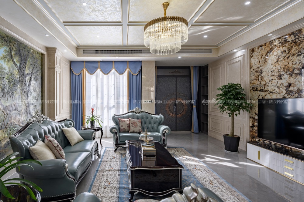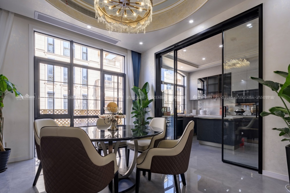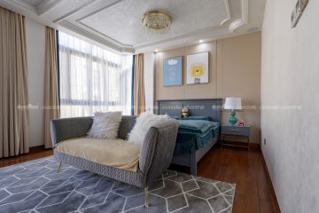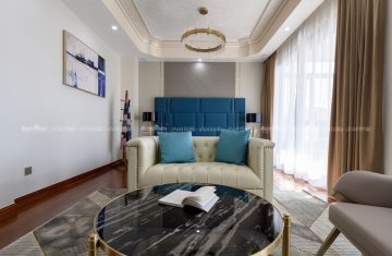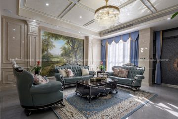 欧式风格,更像是一种多元化的思考方式,将怀古的浪漫情怀与现代人对生活的需求相结合,兼容华贵典雅与时尚现代,高雅而和谐是现代欧式的代名词。本案面积较大,所以利用有一定品质的油画做了大幅的装饰,提升一定的格调。空间上尽量整合,使得每个空间都比较方正且动线合理流畅。