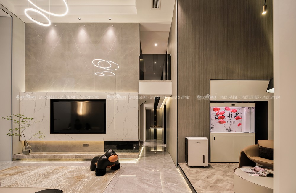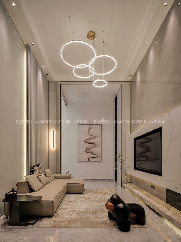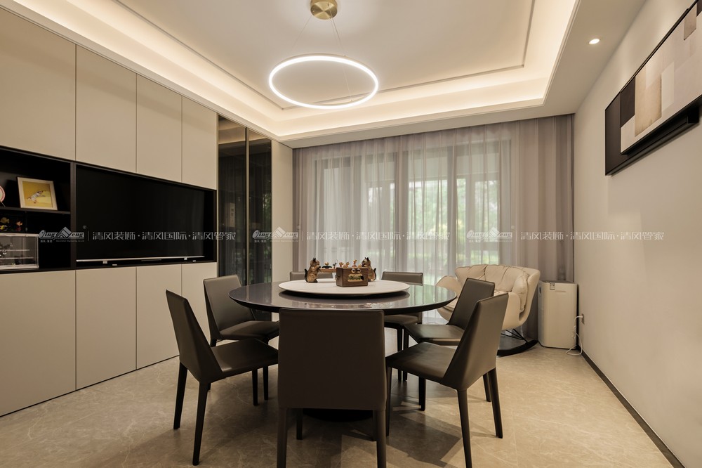 家是安放生活的容器,也是表达生活态度的空间它能包容精致的生活态度,是生活的鲜活烙印,让岁月安静地、自由地盛放。本案从业主需求出发,将它定义为现代风格,将美与实用杂糅在空间里,让业主一家可以享受生活的静谧美好。